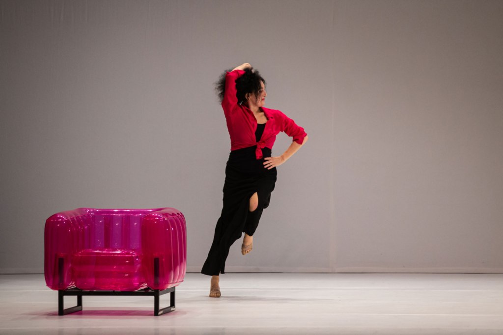 E così, ad esempio, l’essenza dell’iconica sedia delle origini (vedi il Café Müller di Pina Bausch) resta ma prende le sembianze di una morbida, leggera, coloratissima, rimbalzante o sprofondante poltrona gonfiabile.