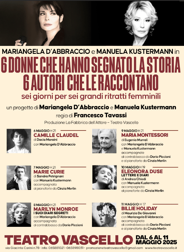 Si conclude questo pomeriggio, il Progetto di Mariangela D’Abbraccio e Manuela Kustermann per la regia di Francesco Tavassi “6 donne che hanno segnato la storia – 6 autori che le raccontano”, trovando coronamento con il racconto di Maurizio De Giovanni su Billie Holiday.