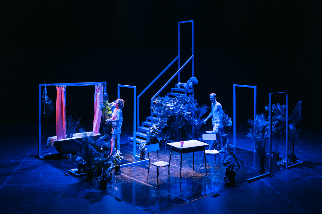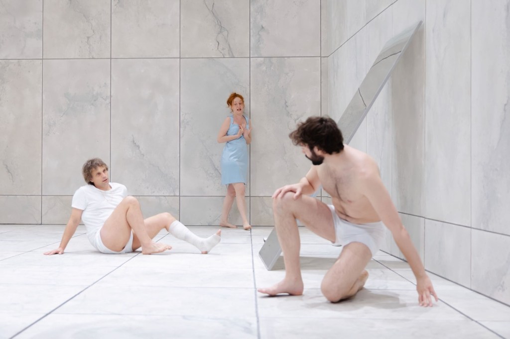 Spettacolosa visualizzazione ne è la volutamente disorientante scenografia, solo apparentemente un tradimento allo stile del vaudeville tutto porte, armadi e letti sfatti alla Georges Feydeau. Qui, infatti, il regista Rifici chiede all’acuto estro di Guido Buganza di realizzare una scena aperta, destrutturata, proprio per poter essere disponibile a rendersi continuamente modulabile. Adattabile alle diverse esigenze che le aree della nostra psiche, come turbolenti condòmini di un hotel, reclamano. Divertentissimo, il sapiente gioco registico attraverso cui queste aree di volta in volta, a seconda delle situazioni emotive, vengono “abitate” dagli interpreti in scena. Una coralità attoriale dalla musicalità matematica assai efficace e trascinante.