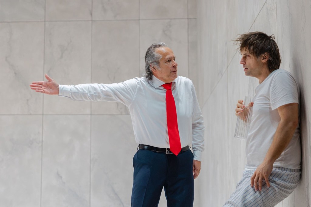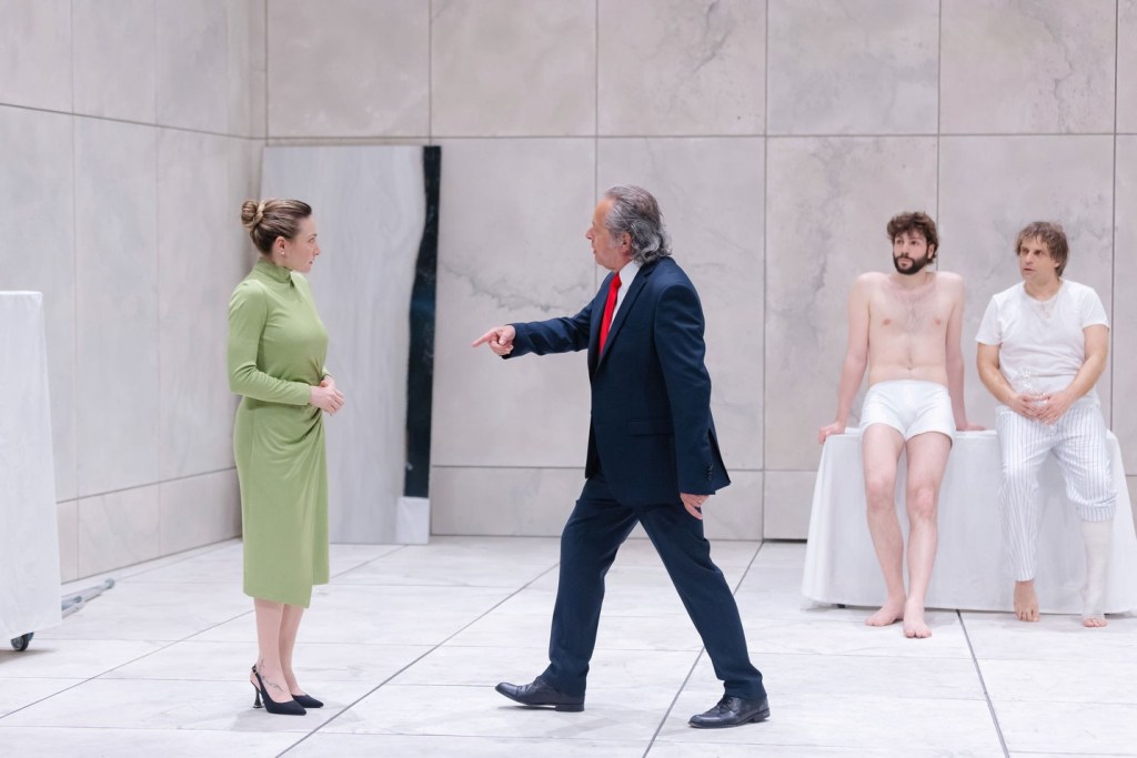 Lo spettatore finisce, allora, per farsi più prossimo alle intime e contraddittorie scelte – incluse le non scelte – di ciascun personaggio. Che qui si rivela in cambi di “habitus” (di modo di essere) attraverso una raffinata scelta registica che fa fluire determinate parti della psiche dell’uno in quella di un altro personaggio – con il quale può “conclamarla” – attraverso un’affascinante duplice distribuzione. “Siamo Antigone e Creonte insieme, o lo siamo già stati più volte, di più in certe fasi della vita e meno in altre e viceversa o in alternanza” – ci ricorda Roberto Latini.