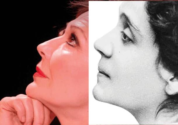 E’ avvolta elegantemente in un morbido mantello che la cinge in un seducente abbraccio. E che lascia cadere all’indietro. Emerge dal buio con la complicità di una luce, divinamente crepuscolare. E’ la Eleonora Duse di un’incantevole Manuela Kustermann.