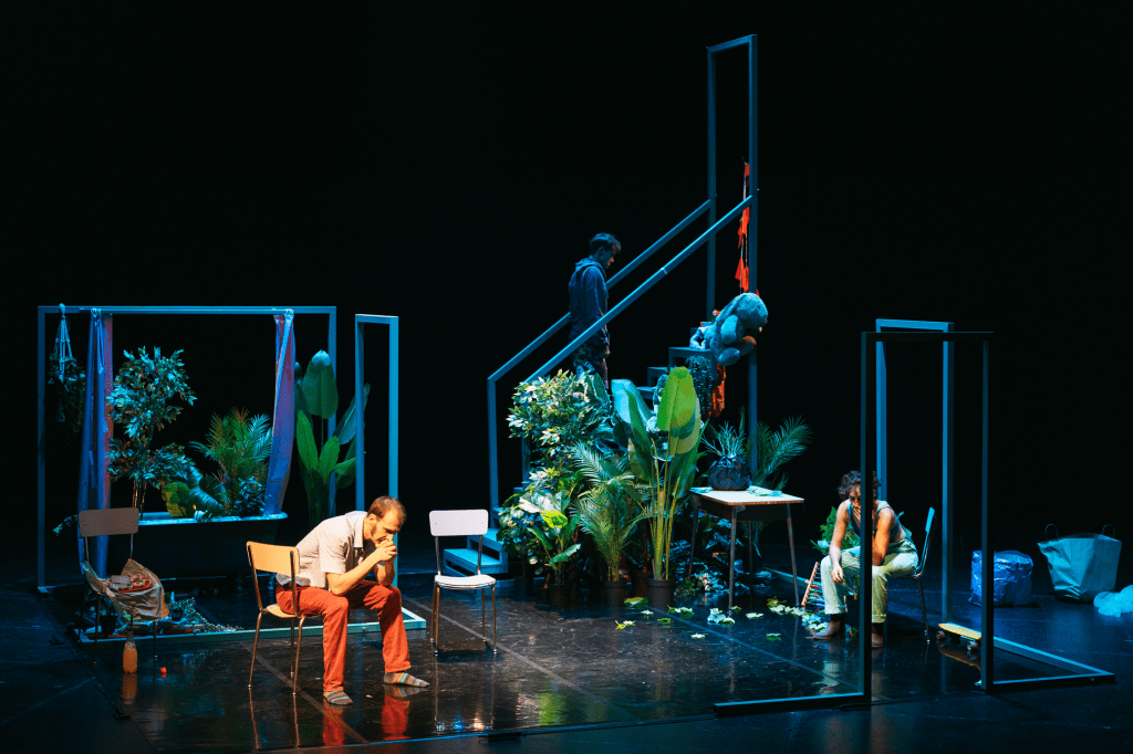 Rifici chiede inoltre ai propri attori di essere così accoglienti da offrire ospitalità alla multiforme natura del linguaggio, rendendone i colori più intraducibili verbalmente attraverso la musicalità seducentemente inquietante di strumenti musicali, in osmotico dialogo con la scena.