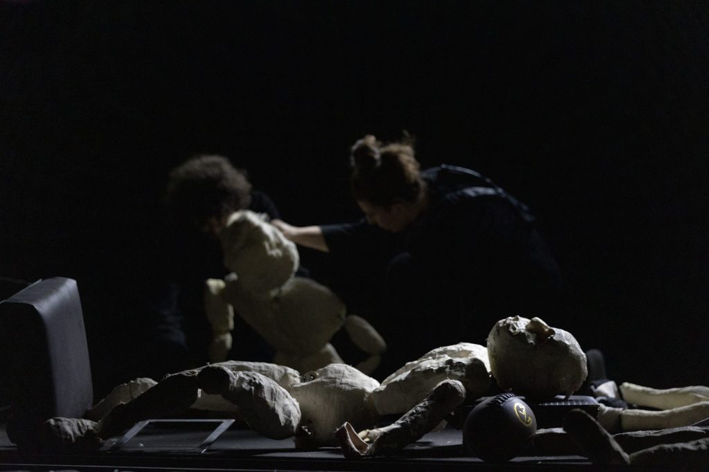 Ma a riemergere riesce il respiro, il soffio vitale, il desiderio. E’ meravigliosamente visualizzato dai performer Andrei Balan, Francesco Meloni, Marta Meneghetti, Giselda Ranieri, Evelina Rosselli, Isacco Venturini, Simone Zambelli che fanno vivere i puppets, regalando loro tutte le variazioni dell’impeto e della ritrosia; della delusione e dell’entusiasmo, della cura e della paura. “Le vediamo”, queste variazioni emotive: quasi fino a toccarle, tanto sono ricche in espressività.